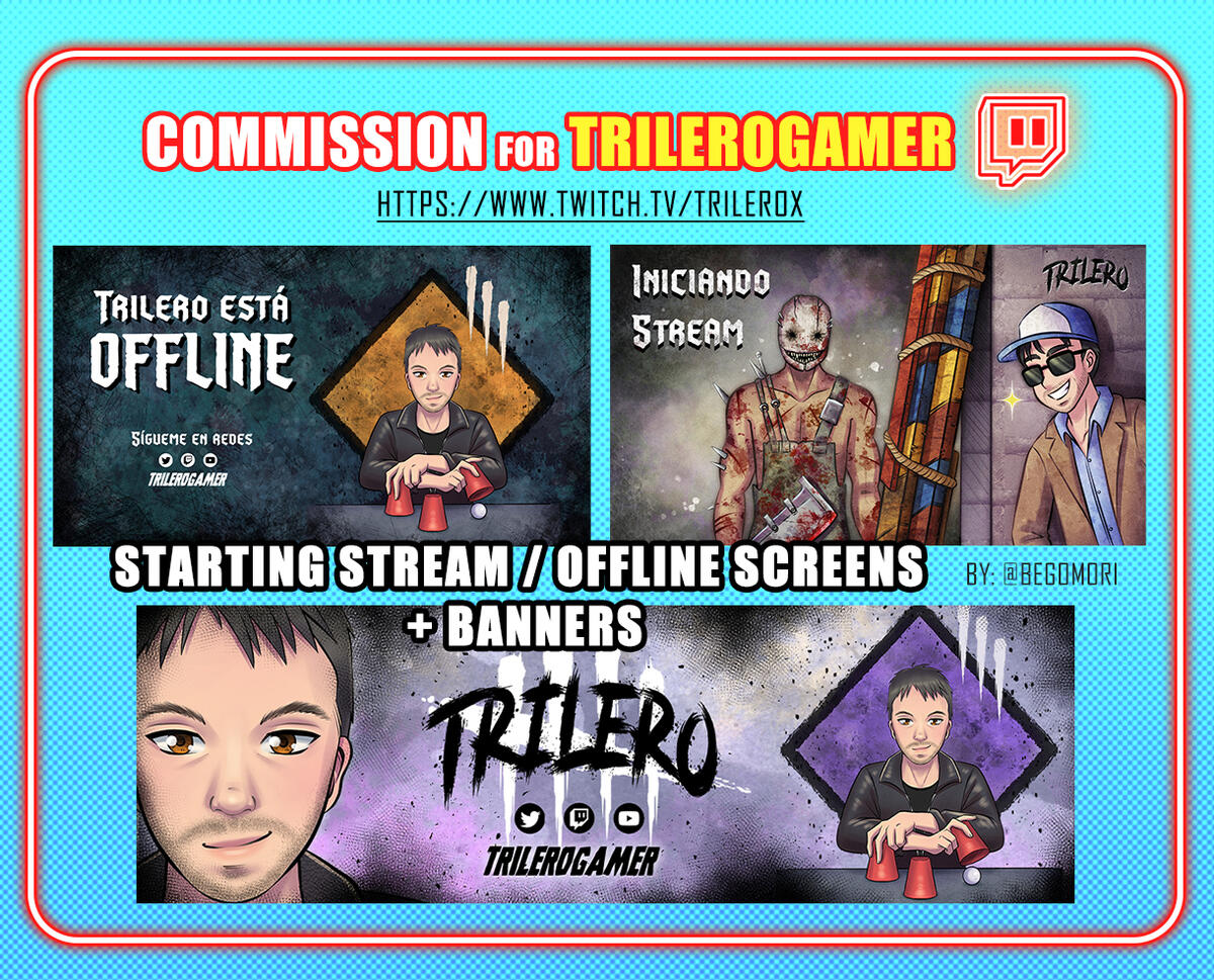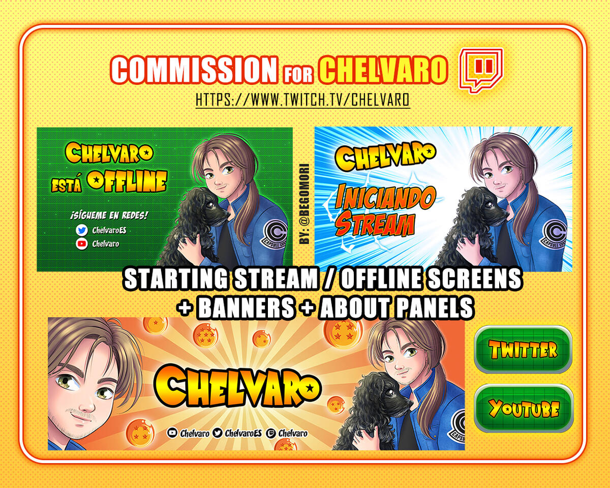 Para los banners, el cliente me debe indicar antes de empezar el encargo para qué redes sociales quiere los banners (Twitch, Youtube, Twitter, etc). Cada red social tiene una resolución distinta y adaptar el dibujo a cada tipo de banner tiene su trabajo, e influirá en el precio final del encargo.